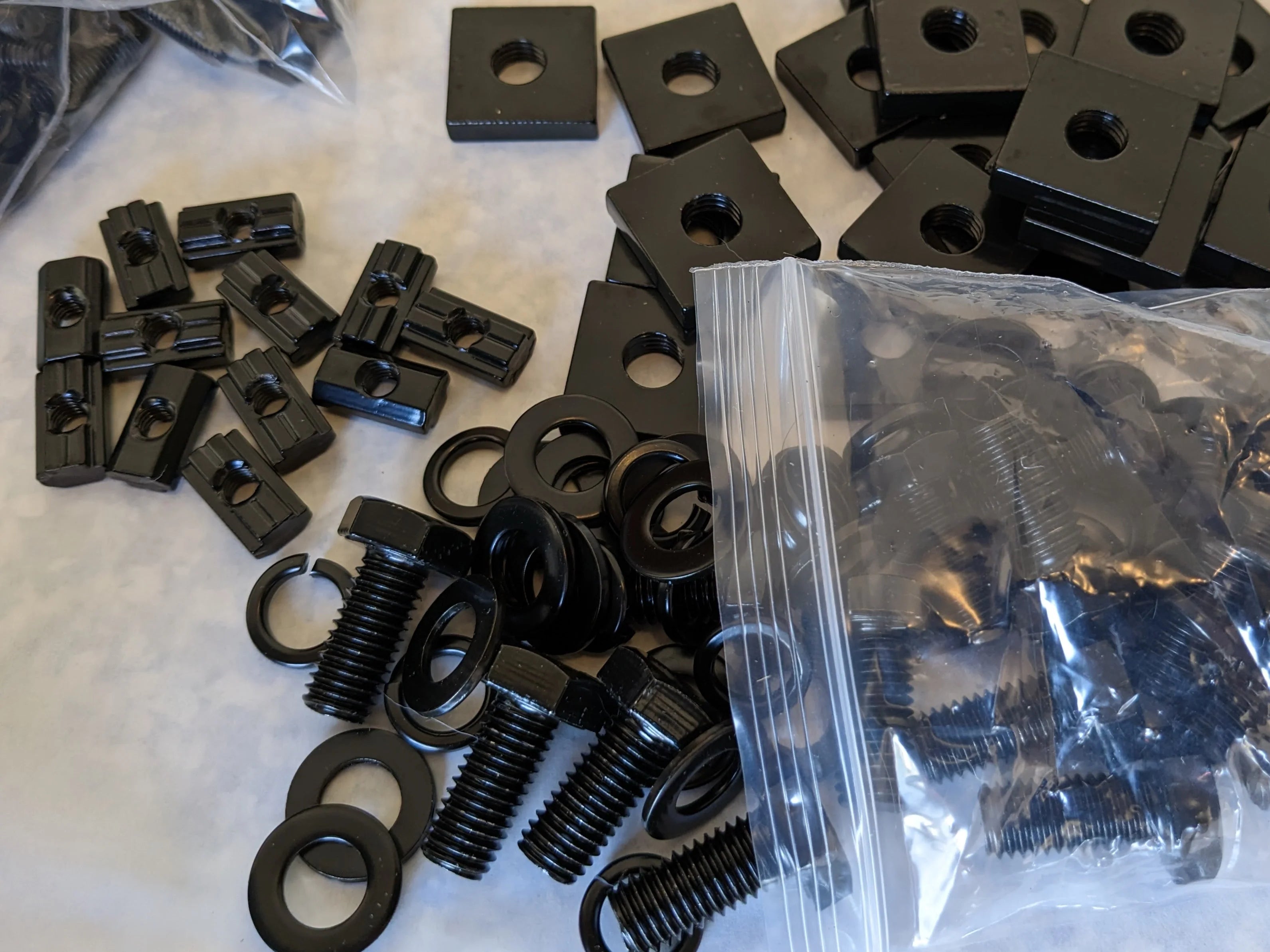 All stainless-steel hardware with e-coated black for better weather resistance and unify look. We also included some T nut for you free of charge.